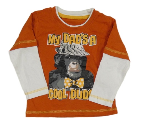Tmavooranžovo-biele tričko so šimpanzom a nápismi St. Bernard