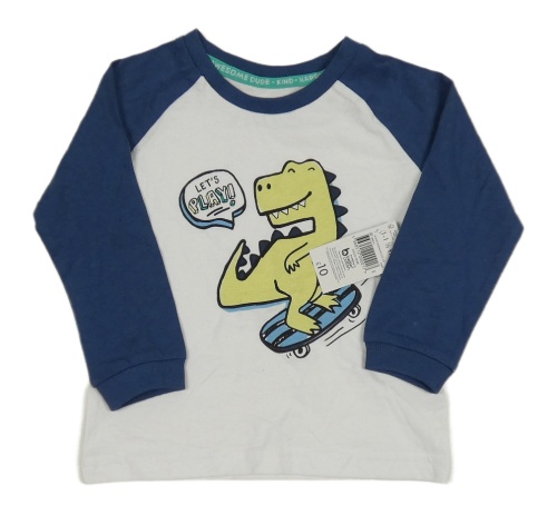 Nové - Bielo-tmavomodré tričko s dinosaurom Matalan