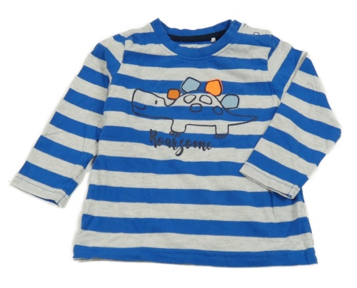 Safírovo-biele pruhované tričko s dinosaurom Topomini