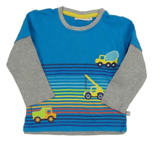 Modro-pruhované tričko s nákladiakmi a sivymi rukávy Liegelind