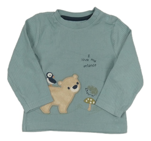 Modré rebrované tričko s medvěďom Nutmeg