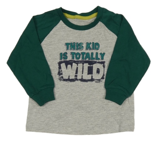 Sivo-tmavozelené melírované tričko s nápismi Matalan