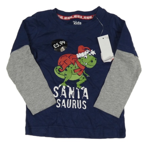Nové - tmavomodro-sivé tričko s dinosaurom s vánočním motívom M&Co
