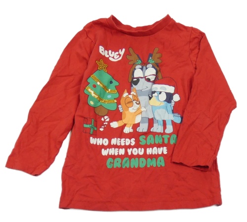 Červené tričko s pejsky - Bluey a Bingo a vánočním motívom Nutmeg