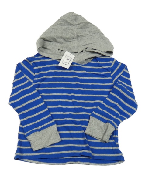 Nové - Tmavomodro-sivé pruhované tričko s kapucňou Place