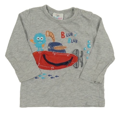 Sivé melírované tričko s ponorkou a príšerkou Topomini