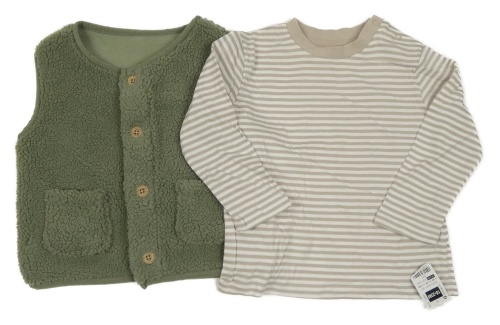 Nové - 2set - Béžovo-biele pruhované triko + khaki huňatá prepínaci vesta Dunnes