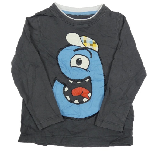 Šedomodré tričko s farebným číslom a príšerkou