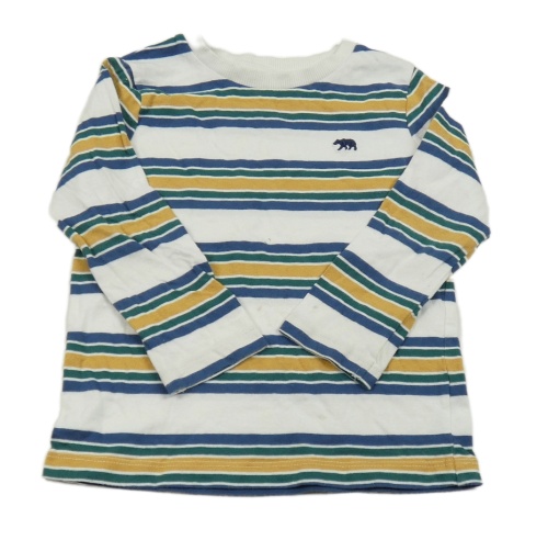 Bielo-modro-zeleno-žlté pruhované tričko s medvěďom Nutmeg