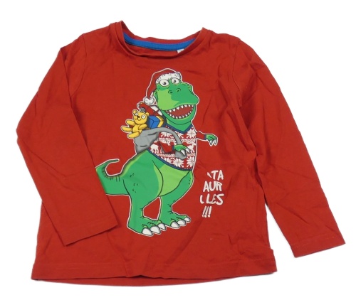 Červené tričko s dinosaurom s vánočním motívom C&A