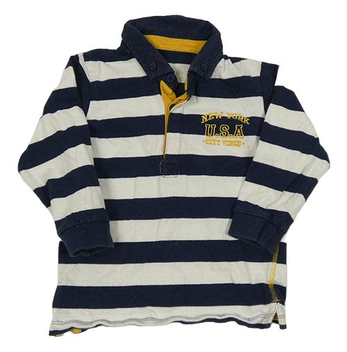 Tmavomodro-biele pruhované polo tričko s nápisom Matalan
