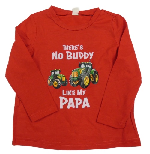 Červené tričko s traktormi a nápismi