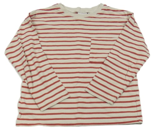 Béžovo-červené pruhované tričko s vreckom Zara