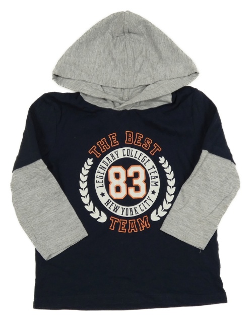 Tmavomodro-sivé tričko s číslom a kapucňou Topolino