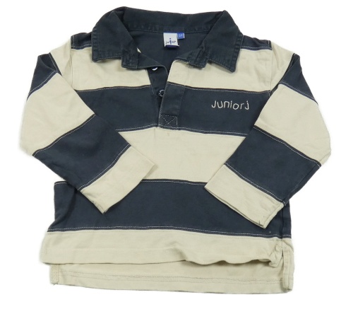 Tmavomodrdo-béžové pruhované polo tričko s nápisom Junior J