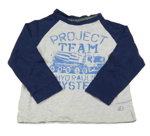 Sivo-tmavomodré tričko s autom a nápismi S. Oliver