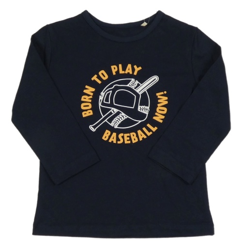 Tmavomodré tričko s míčkem a pálkou a nápismi Topolino