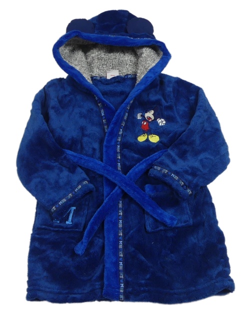 Tmavomodro-zafírový plyšový župan s Mickey a kapucňou s uškami Disney
