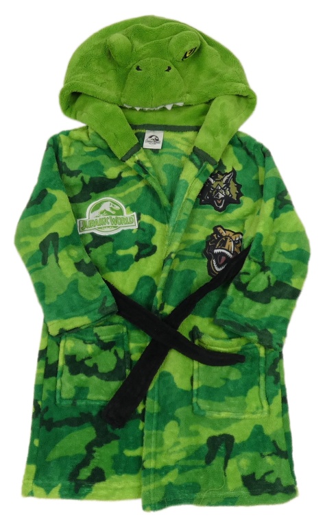 Zelený army chlpatý župan s opaskom a kapucí - Jurský svět
