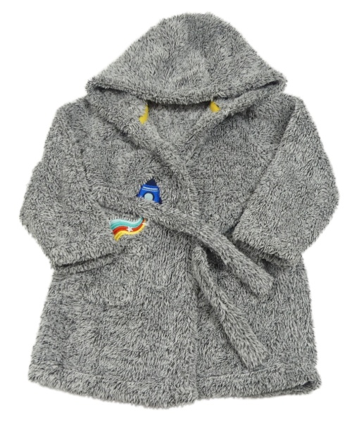 Sivý melírovaný chlpatý župan s obrázkami a kapucňou Matalan