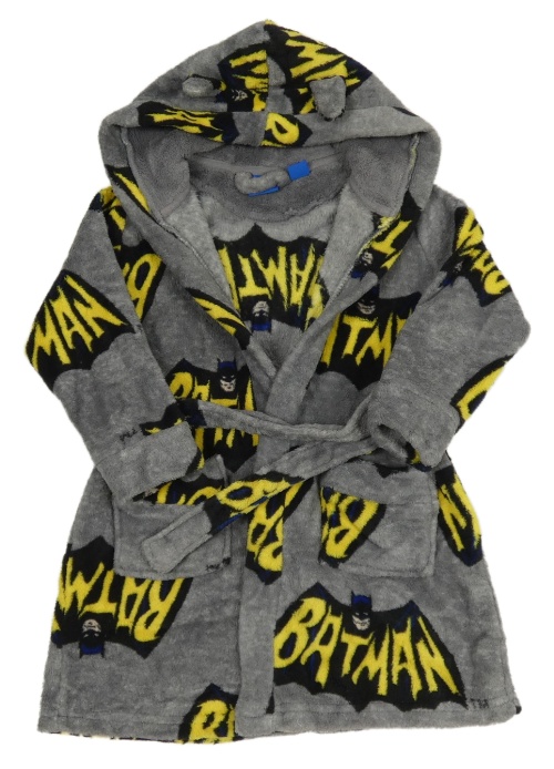 Sivo-čierny chlpatý župan s Batmanem a kapucňou Rebel