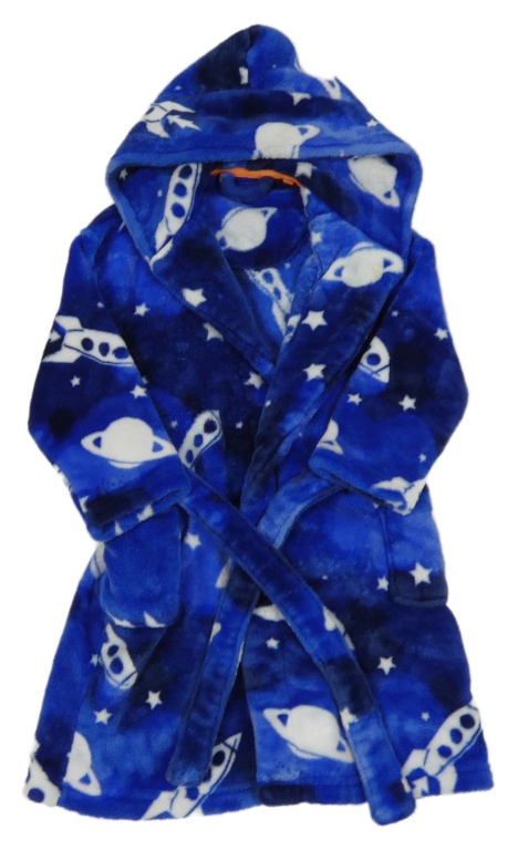 Safírovo-tmavomodrý plyšový župan s raketami a kapucňou Next