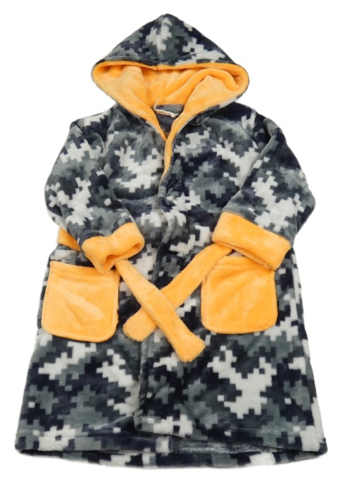 Sivo-bielo-tmavomodrý vzorovaný chlpatý župan s kapucňou Minikidz