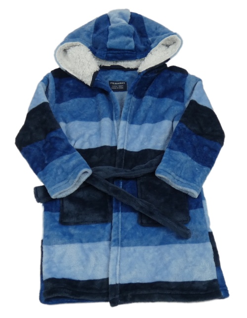 Modrý pruhovaný chlpatý župan s kapucňou Primark