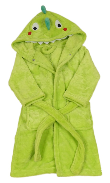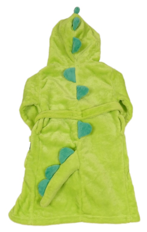 Limetkový chlpatý župan s kapucňou a páskem - dinosaurus Lolanta
