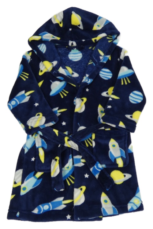 Tmavomodrý chlpatý župan s raketami a kapucňou Little Kids