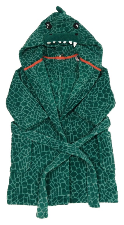 Zelený vzorovaný chlpatý župan s kapucí - dinosaurus Joules