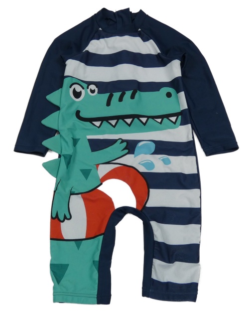 Tmavomodro-biely pruhovaný UV overal s krokodýlkem Matalan