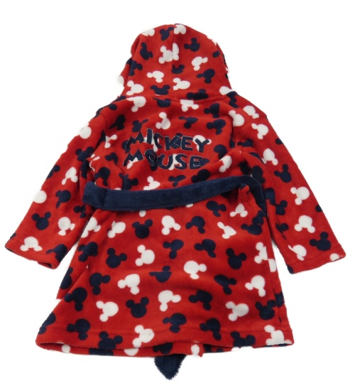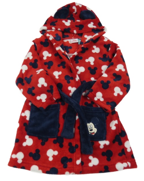 Červený chlpatý župan s Mickeym a kapucňou Disney