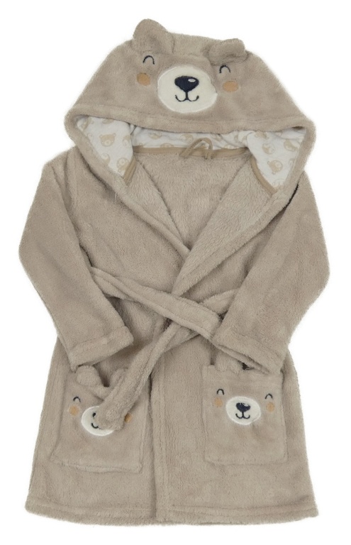 Šedobéžový chlpatý župan s kapucí - medvěď