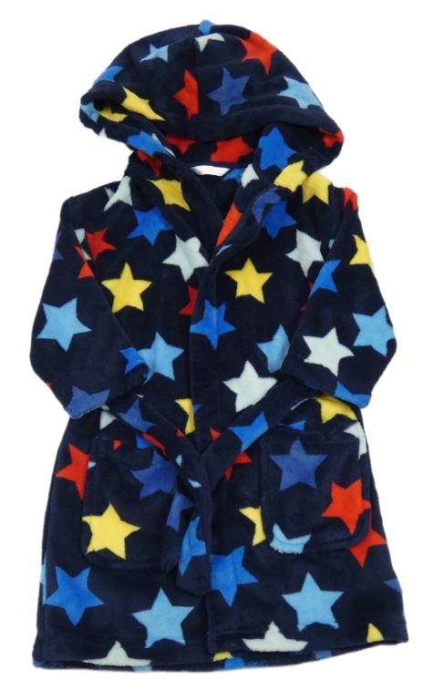 Tmavomodrý chlpatý župan s hviezdami a kapucňou M&S