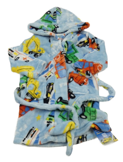 Svetlomodrý plyšový župan s farebnými autami a kapucňou