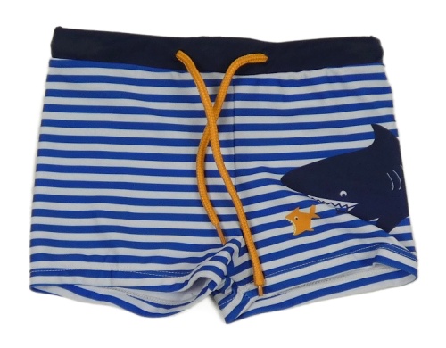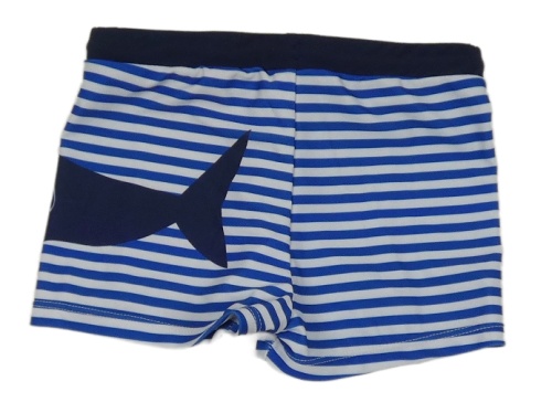 Tmavomodro-biele pruhované nohavičkové plavky so žralokom Alive
