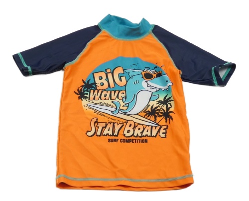 Tmavomodro-neónově oranžové UV tričko s žralokom Next