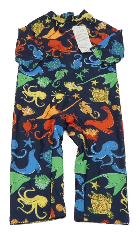 Nové - tmavomodro-farebný UV overal so zvířaty F&F