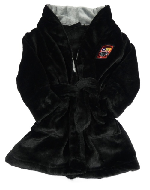 Čierny plyšový župan s nášivkou