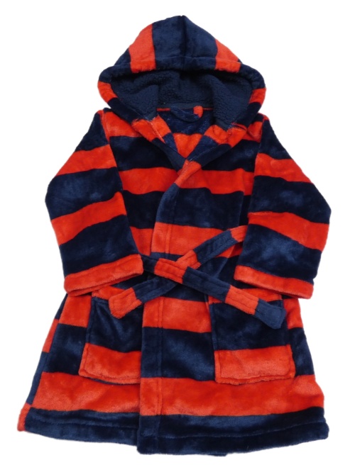 Tmavomodro-červený pruhovaný chlpatý župan s kapucňou Nutmeg