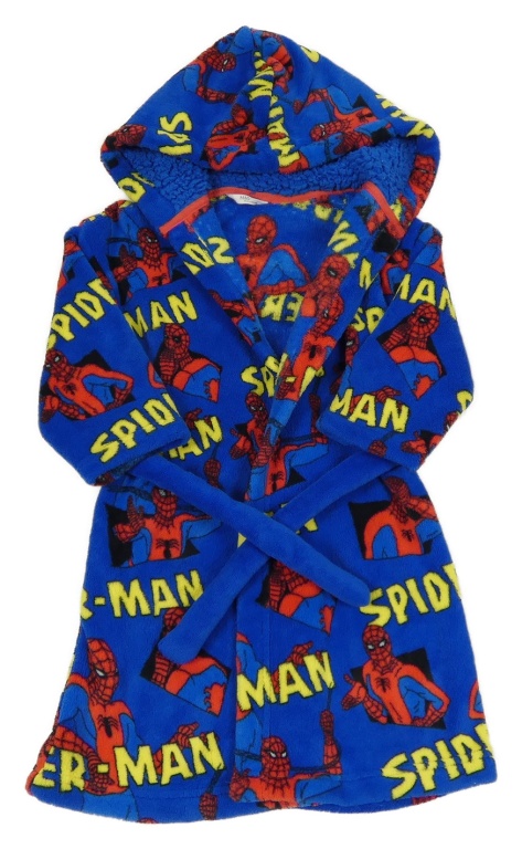Modrý chlpatý župan so Spidermanem a kapucňou M&S
