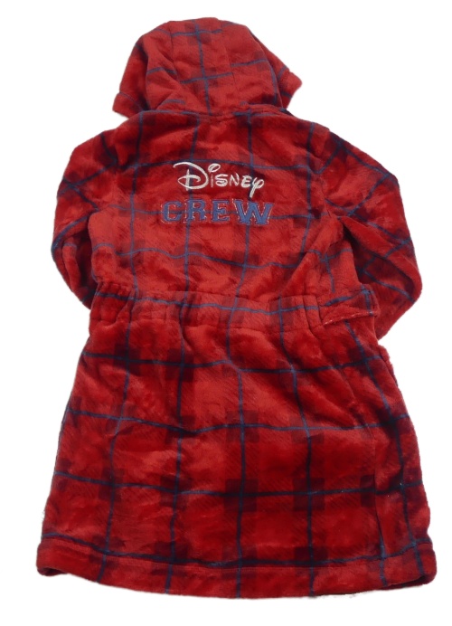 Červeno-modrý kockovaný chlpatý župan s Mickeym a kapucňou Disney