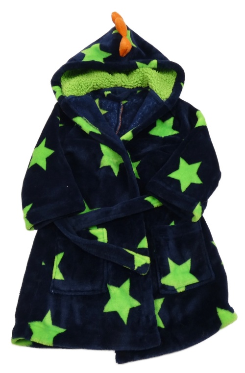 Tmavomodro-zelený plyšový župan s hviezdami a kapucňou Nutmeg