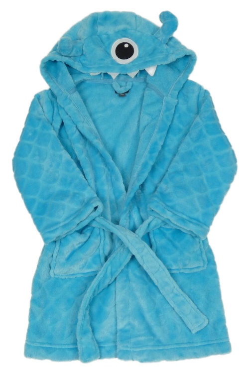 Svetlomodrý plyšový župan s kapucí - príšerka