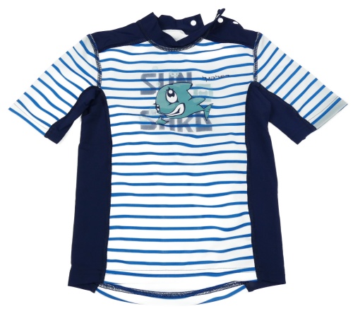 Modro-biele pruhované UV tričko s velrybou