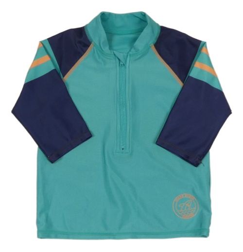 Modrozeleno-tmavomodré UV tričko so znakom so žralokom a pruhmi Tu