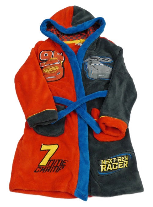 Tmavošedo-červený chlpatý župan s Cars a kapucňou Disney
