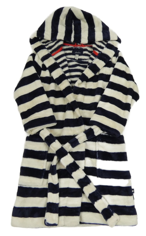 Tmavomodro-biely prubovaný plyšový župan s kapucňou Joules