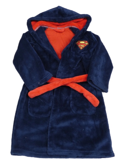 Tmavomodro-červený chlpatý župan so Supermanem a kapucňou M&S